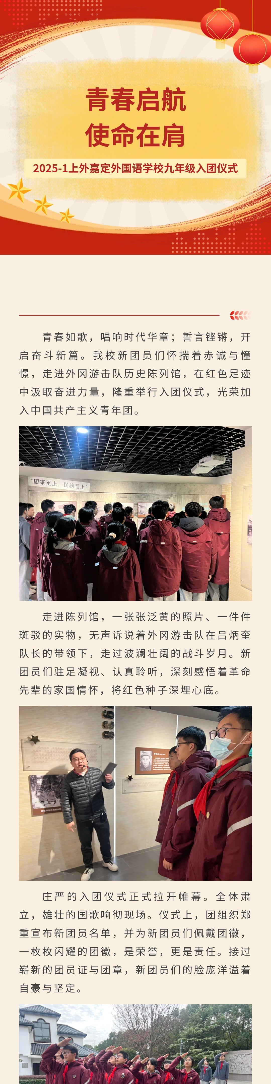 【仪式教育】青春启航,使命在肩 ——2025-1上外嘉定外国语学校九年级入团仪式