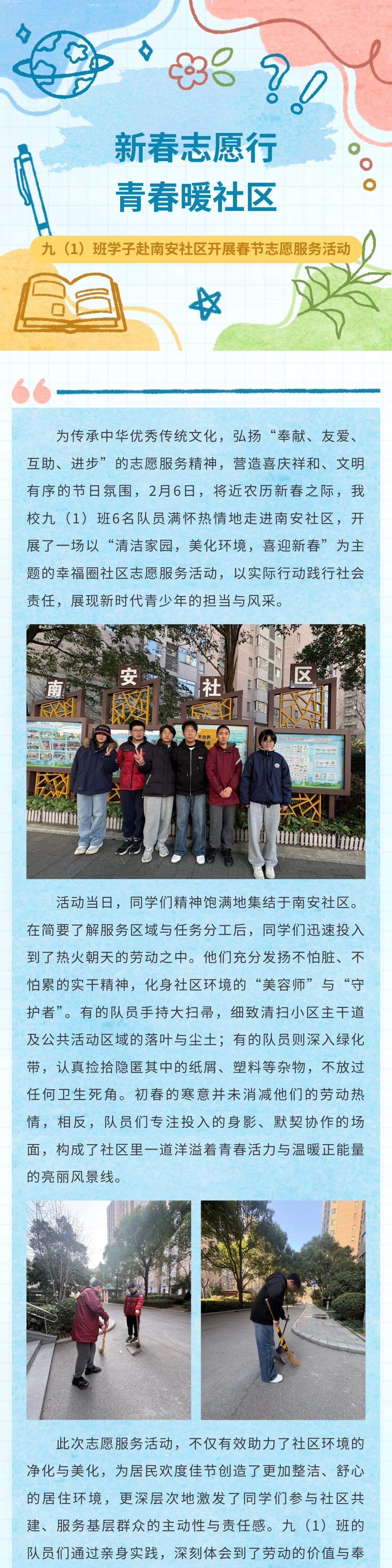 【家庭学习苑】新春志愿行,青春暖社区 ——九(1)班学子赴南安社区开展春节志愿服务活动
