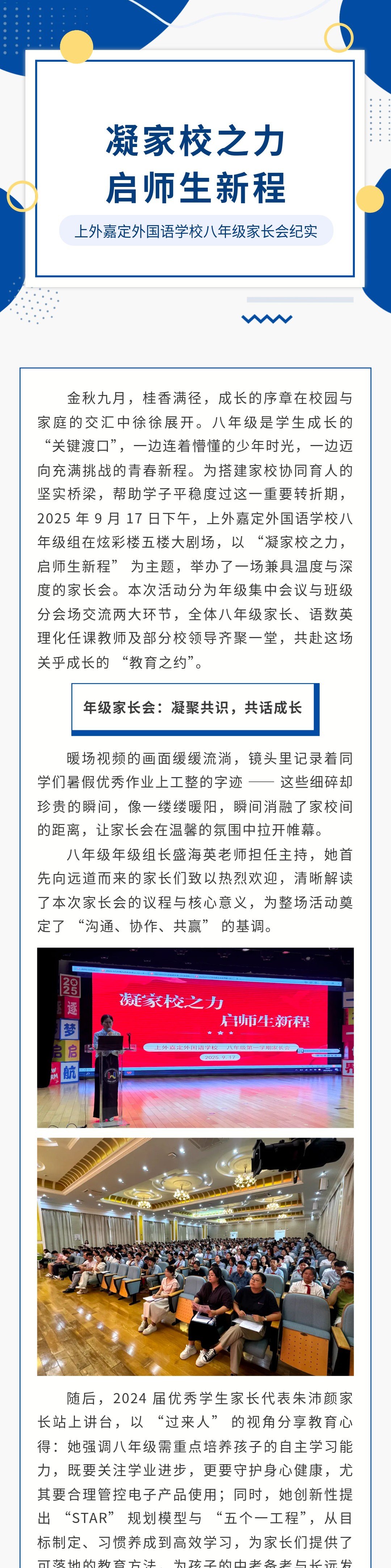 【家长学校】凝家校之力,启师生新程 —— 上外嘉定外国语学校八年级家长会纪实