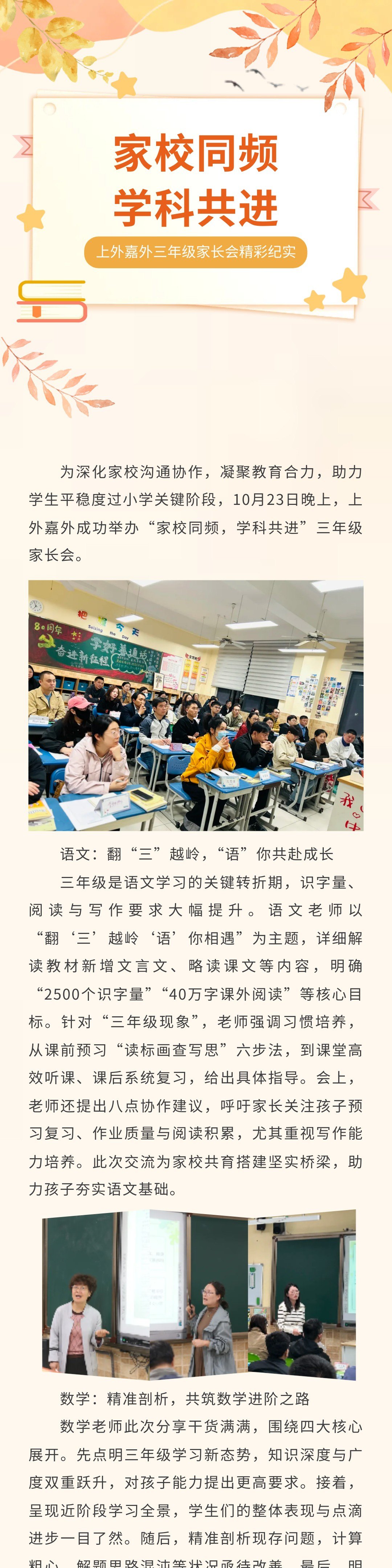 【家校协同】家校同频 学科共进 ——上外嘉外三年级家长会精彩纪实