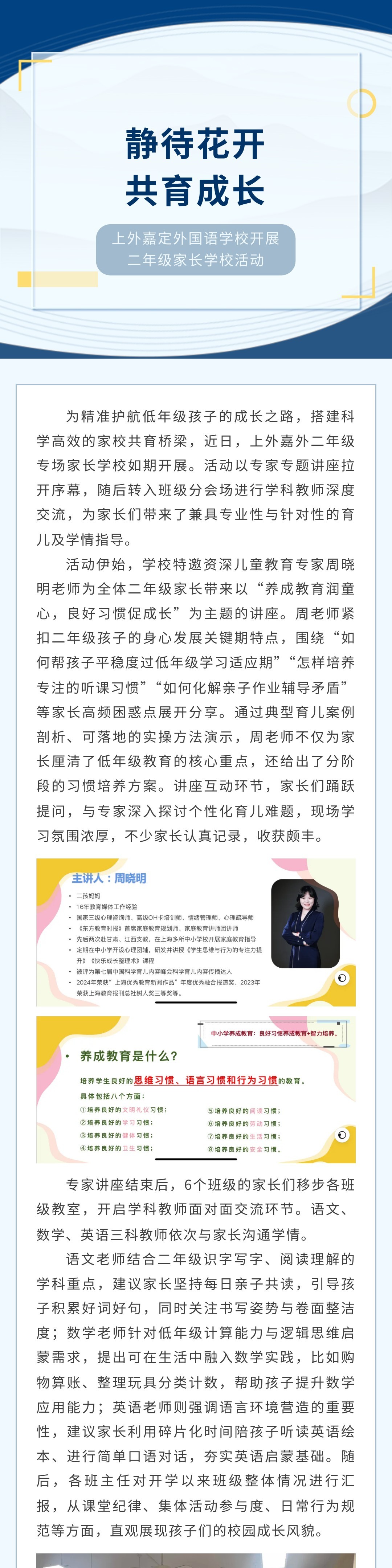 【家长学校】静待花开 共育成长——2025-1上外嘉定外国语学校二年级家长学校活动