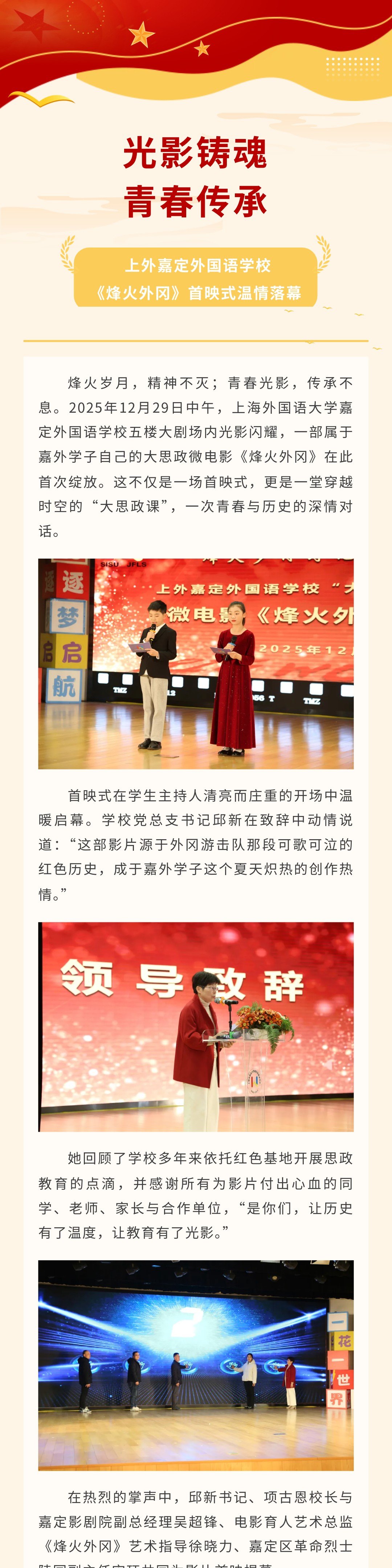 【思政教育】光影铸魂,青春传承 ——上外嘉定外国语学校《烽火外冈》首映式温情落幕