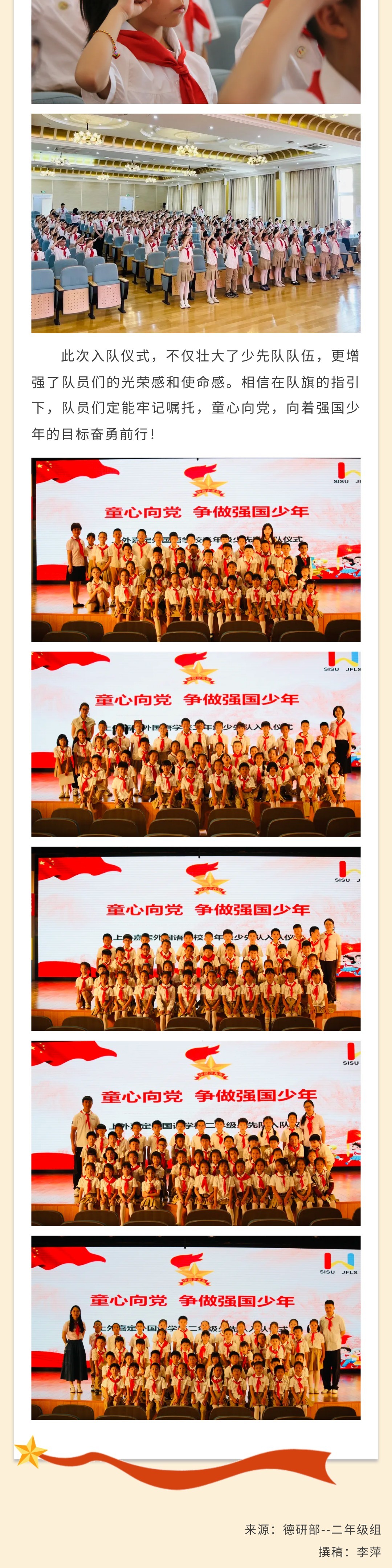 【仪式教育】“童心向党,争做强国少年” ——上外嘉外举行二年级少先队入队仪式