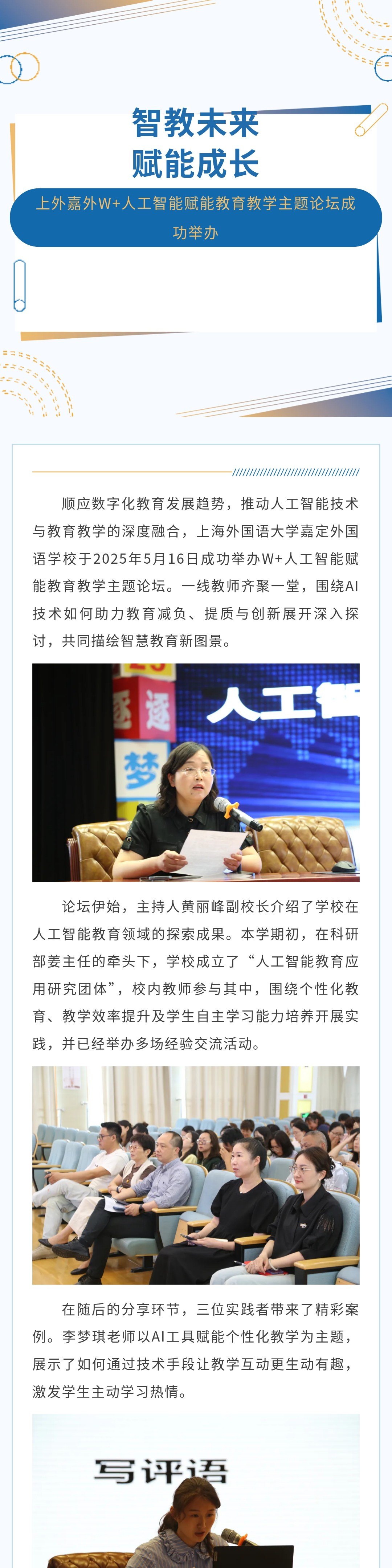 【W+论坛】智教未来,赋能成长——2024-2上外嘉定外国语学校“人工智能赋能教育教学”主题论坛成功举办